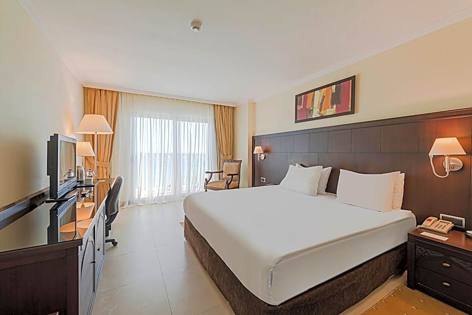 77 Sqm Corner Suite smoking room with Front Mediterranean Sea View comes with Balcony, Living Room, Working Space, 32inch LCD TV, Guest Bathroom and En-suite Bathroom With Jetted tub.